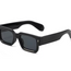 Een strak rechthoekig silhouet, uitgevoerd in hoogwaardig acetaat, geeft deze zonnebril een rustige maar